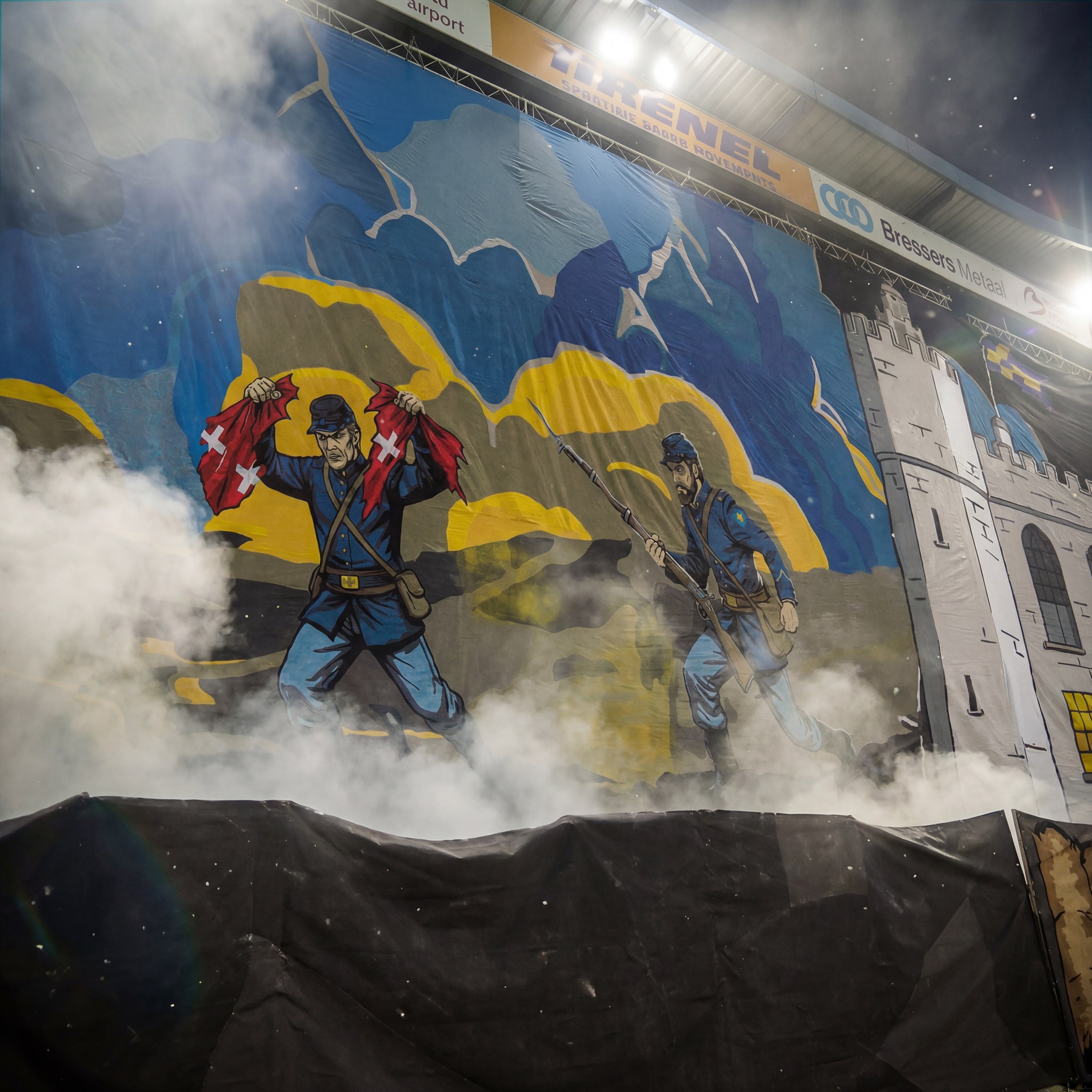 Op het moment dat het doek openviel, veranderde de tribune in een enkel emotioneel beeld. Supporters zagen niet alleen een illustratie, maar hun stad, hun club en hun mentaliteit op monumentale schaal terug. De rook, de architectonische verwijzingen en de vijandige symboliek gaven de choreografie extra lading en trokken het stadion dieper de wedstrijd in. Daar ligt de echte impact van dit project: als een stuk voetbalcultuur dat spanning omzet in trots en reactie omzet in herinnering.